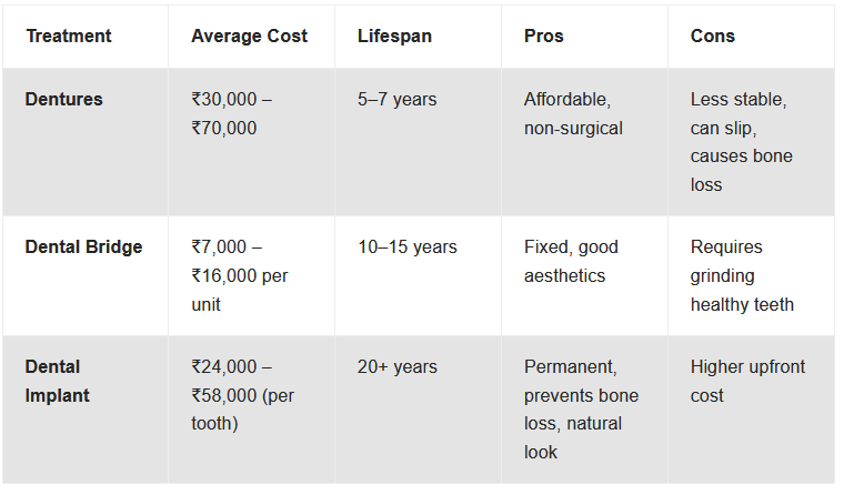 Dental Implants vs. Other Tooth Replacement Options (Cost Comparison)