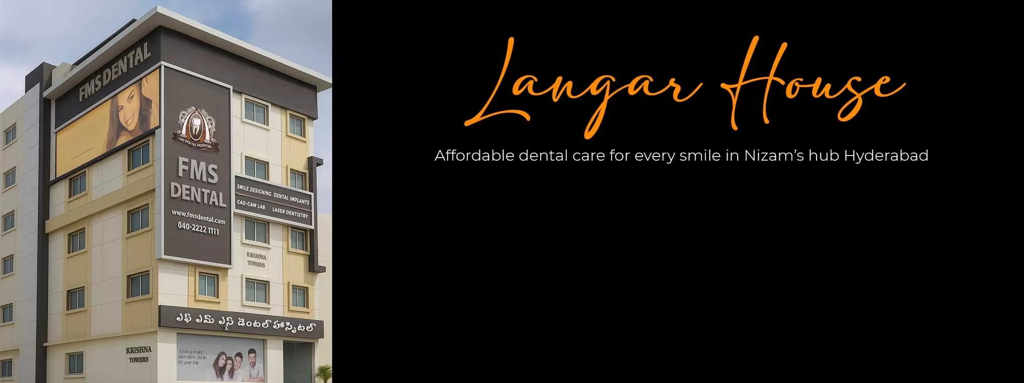 FMS Dental Langar House is situated prominently on the Langar House main road, close to the Langar House Flyover, making it extremely convenient for residents across Langar House, Attapur, Mehdipatnam, Gudimalkapur, Toli Chowki, Sun City, Bandlaguda, Hydershakote, Upperpally and Karwan.